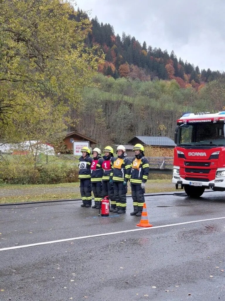 Die Gruppe 2 der Feuerwehr Thüringerberg startete in der Bronzeklasse und zeigte eine gute Leistung. Beim ersten Bewerb (FLA) erreichte sie eine Zeit von 45,14 Sekunden, musste aber 30 Fehlerpunkte hinnehmen. Damit belegte sie den 46. Gesamtrang von 63 Gruppen. Am zweiten Bewerb (BFLA) verbesserte sie sich deutlich und schaffte eine fehlerfreie Zeit von 48,51 Sekunden. Das bedeutete den 26. Rang von 71 Gruppen in der Bundesklasse Bronze. Die Klasse Bronze A gewann die Feuerwehr Viktorsberg. Herzliche Gratulation aus Thüringerberg.